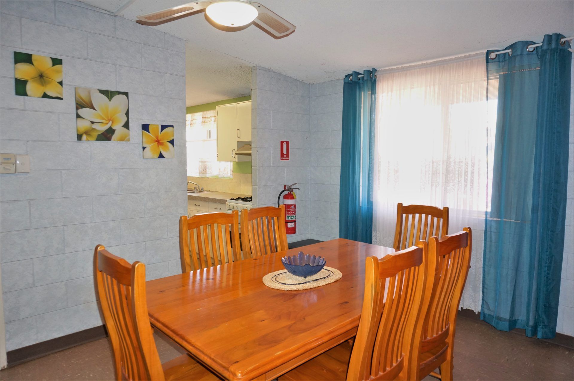 The shady rear entertaining area with 4 burner barbeque and an outdoor table and chairs offers a lovely space to have sundowners after a day soaking in the sights Exmouth has to offer.